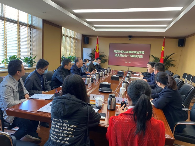孟凡兵等10位同志首先参观了济南山6创意园,听取了园区负责人及工作人员对创意园的成立背景、发展历程及园区取得的成绩的讲解,参观了园区乡村振兴展厅、情怀党建、鲁商严选品牌农业,对园区发展有了非常直观的了解。在鲁商乡村发展集团有限公司安排的座谈会上,集团党委委员、纪委书记吕蒙介绍了公司总体情况,综合部部长杨旭从归位、落地、生根、示范四个方面生动介绍了企业实施乡村振兴战略的实践,对鲁商集团“667”乡村发展模式、企业发展三大任务等进行了详细讲解。校企双方就合作内容、合作途径进行了细致深入的交流。在山东文旅云智能科技有限公司,观看了企业的宣传片,市场运营中心副部长纪法军介绍了企业成立、运营情况,对山东文旅大数据、“云游齐鲁”app,小程序进行了演示,综合部高级经理云清对公司架构、岗位人才需求及职责进行了介绍。双方相互讨论交流热烈,气氛非常友好。