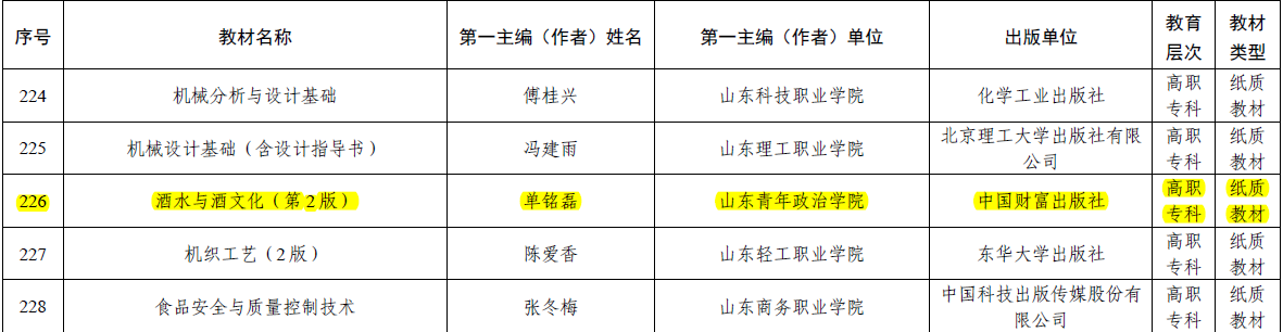 3月17日,山东省教育厅公布第一批“十四五”职业教育省级规划教材名录。我校单铭磊老师编写的教材《酒水与酒文化(第2版)》入选,同时被省教育厅推荐参加国家“十四五”职业教育规划教材遴选。