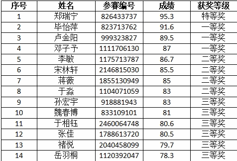现将校园选拔赛获奖学生名单公布如下