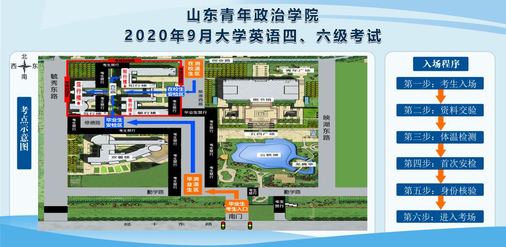 附:山东青年政治学院2020年9月大学英语四六级考试考点示意图